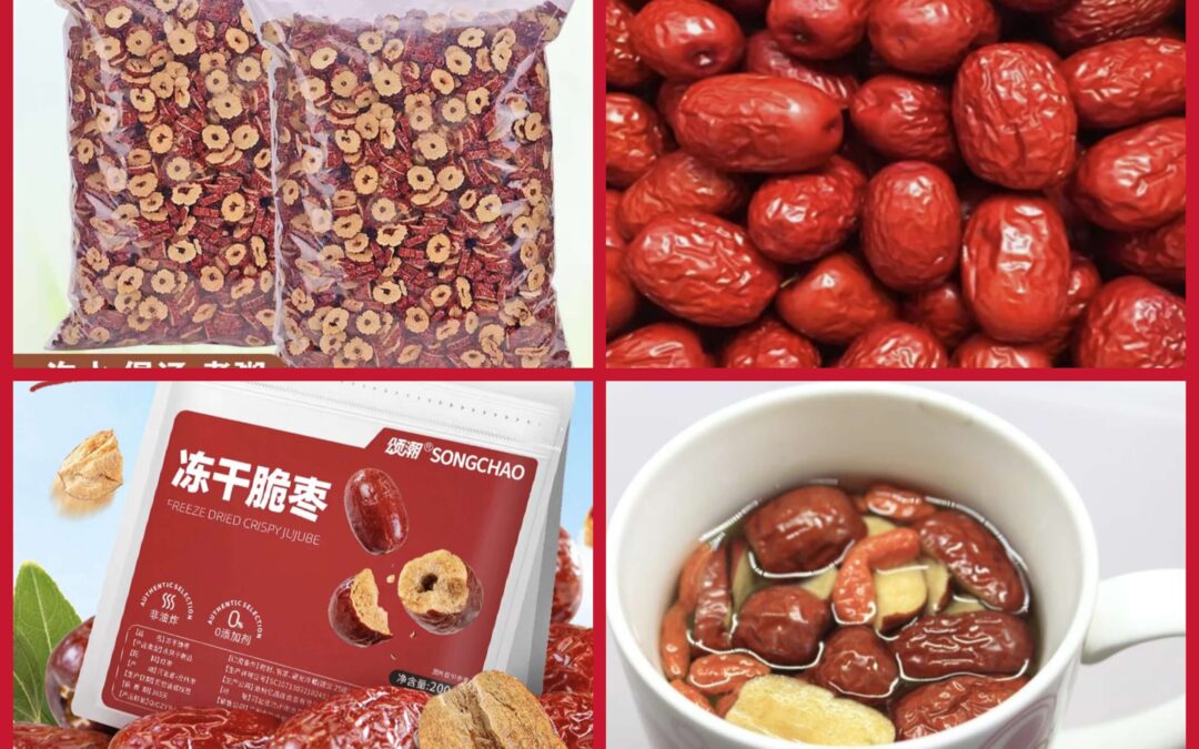 Rote Datteln dienen in erster Linie dazu, die mittlere Energiequelle zu stärken und das Qi zu beleben, das Blut zu nähren und den Geist zu beruhigen, die Milz zu stärken und den Magen zu harmonisieren. Sie sind reich an verschiedenen Vitaminen und Mineralstoffen und können die Immunität stärken, die Schönheit und den Teint fördern, den Schlaf verbessern und zur Senkung des Blutdruckes beitragen. Sie eignen sich besonders für Menschen mit Qi- und Blutmangel oder Milz-Magen-Schwäche. Personen mit Feuchtigkeits-Hitze in Milz und Magen, die zu innerer Hitze neigen oder an Diabetes leiden, sollten sie jedoch nur in Maßen konsumieren oder ganz vermeiden.